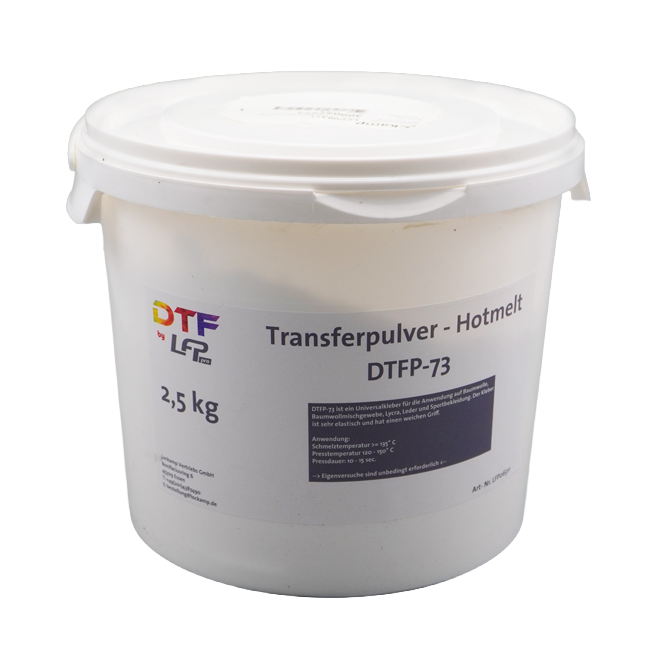 Mit seinen ausgezeichneten thermischen und mechanischen Eigenschaften bietet das LFPpro DTFP 73 Transferpulver eine zuverlässige Lösung für alle, die im DTF Bereich hohe Ansprüche an Haltbarkeit, Elastizität und Waschbeständigkeit stellen und gleichzeitig eine effiziente und sichere Verarbeitung wünschen.