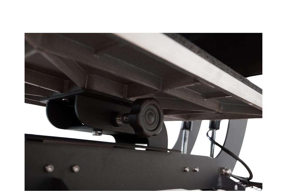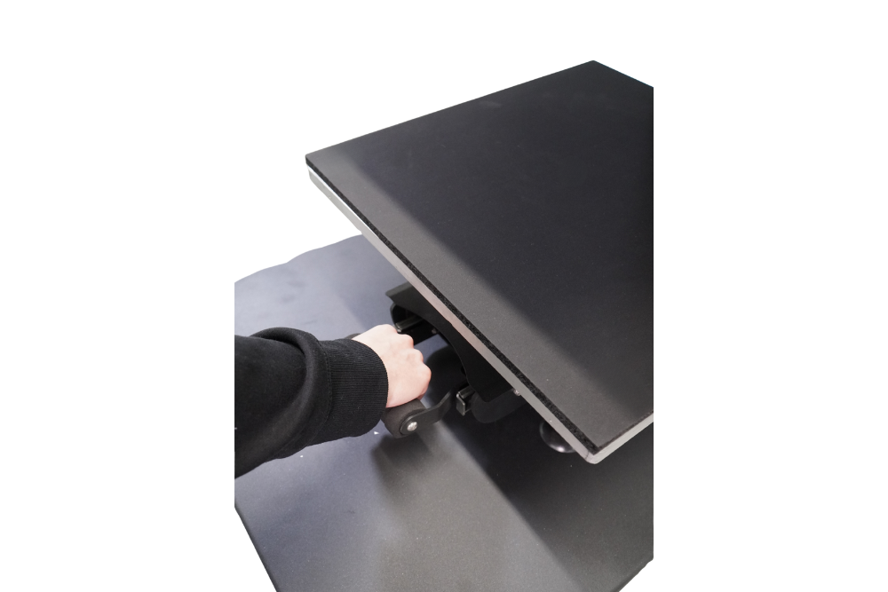 Die Bodenplatten der LFPpro Transferpressen sind, mit Ausnahme von der Eco und Kappenpresse, alle Werkzeuglos austauschbar. So passen auch die Platten einer Basic Serie oder elektrischen Transferpresse in eine Pneumatische und umgekehrt. Dadurch erhält der Kunde eine maximale Flexibilität beim Upgrade oder Zukauf weitere Maschinen. Die Bodenplatten werden über einen Drehknauf an der Seite entriegelt und wieder fixiert.