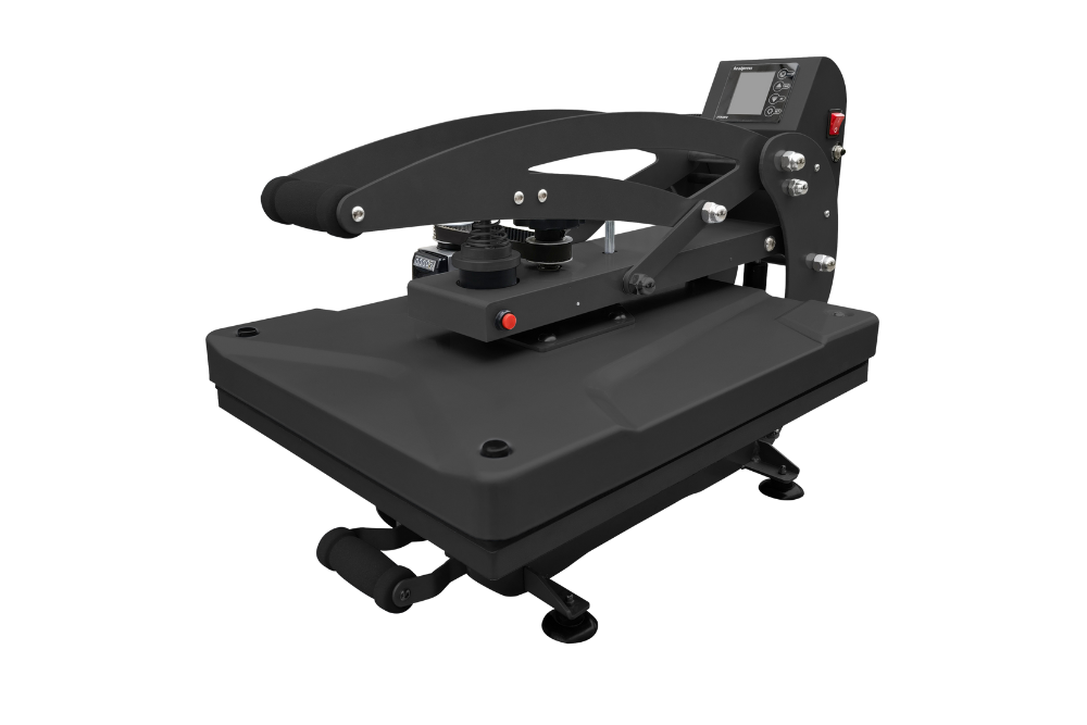 Die LFPpro Transferpresse Basic 40×50 cm ist eine halbautomatische Transferpresse mit elektromagnetischem Verschluss, die sich ideal für den Transferdruck auf Textilien und anderen flachen Materialien eignet. Mit ihrer großzügigen 40 x 50 cm großen Heizplatte bietet sie ausreichend Platz für verschiedene Druckanwendungen. Die Bodenplatte der Transferpresse ist zudem Werkzeuglos austauschbar. Dank der automatischen Öffnungsfunktion wird ein Überhitzen der Materialien verhindert, indem die obere Heizplatte nach Ablauf der eingestellten Zeit automatisch angehoben wird. Die ausziehbare Basis ermöglicht ein bequemes Platzieren der Textilien und minimiert das Risiko von Verbrennungen während des Arbeitsprozesses. Die digitale Steuerung erlaubt eine präzise Einstellung von Temperatur und Zeit, was konsistente und hochwertige Druckergebnisse sicherstellt. Zudem ist der Anpressdruck dank Einstellschraube mit passender Druckanzeige sehr einfach einzustellen.