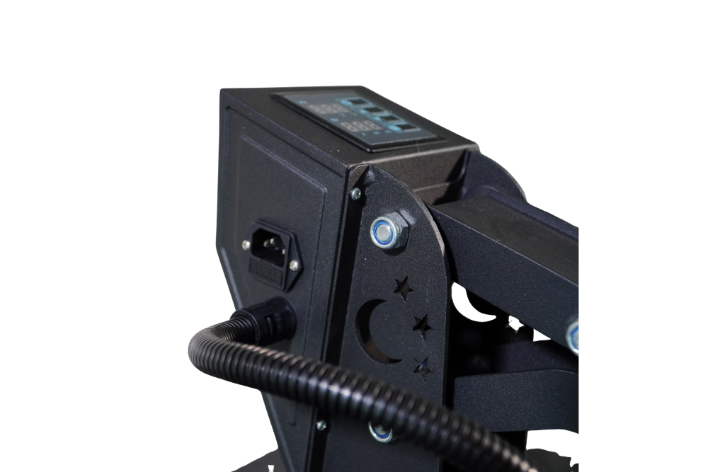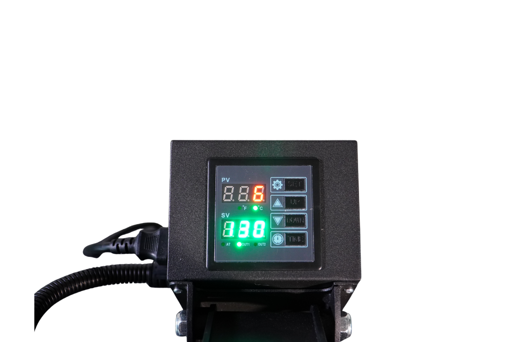 Das Bedienpanel der Transferpresse ist, mit wenigen Einstellmöglichkeiten, schnell und übersichtlich und bietet einen einfachen Einstieg in die Welt der Textilveredelung. Das Display gibt ein akustisches Signal, sobald die gewünschte Verpresszeit abgelaufen ist und die Presse zu öffnen ist. Dies verhindert ein „anbrennen“ des Transfers.